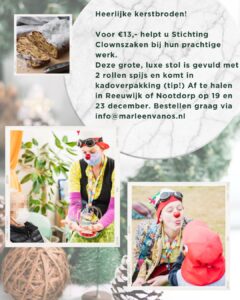 Ze zijn er weer, de heerlijke kerststollen. Bestel ze via de mail en steun Stichting Clownszaken!