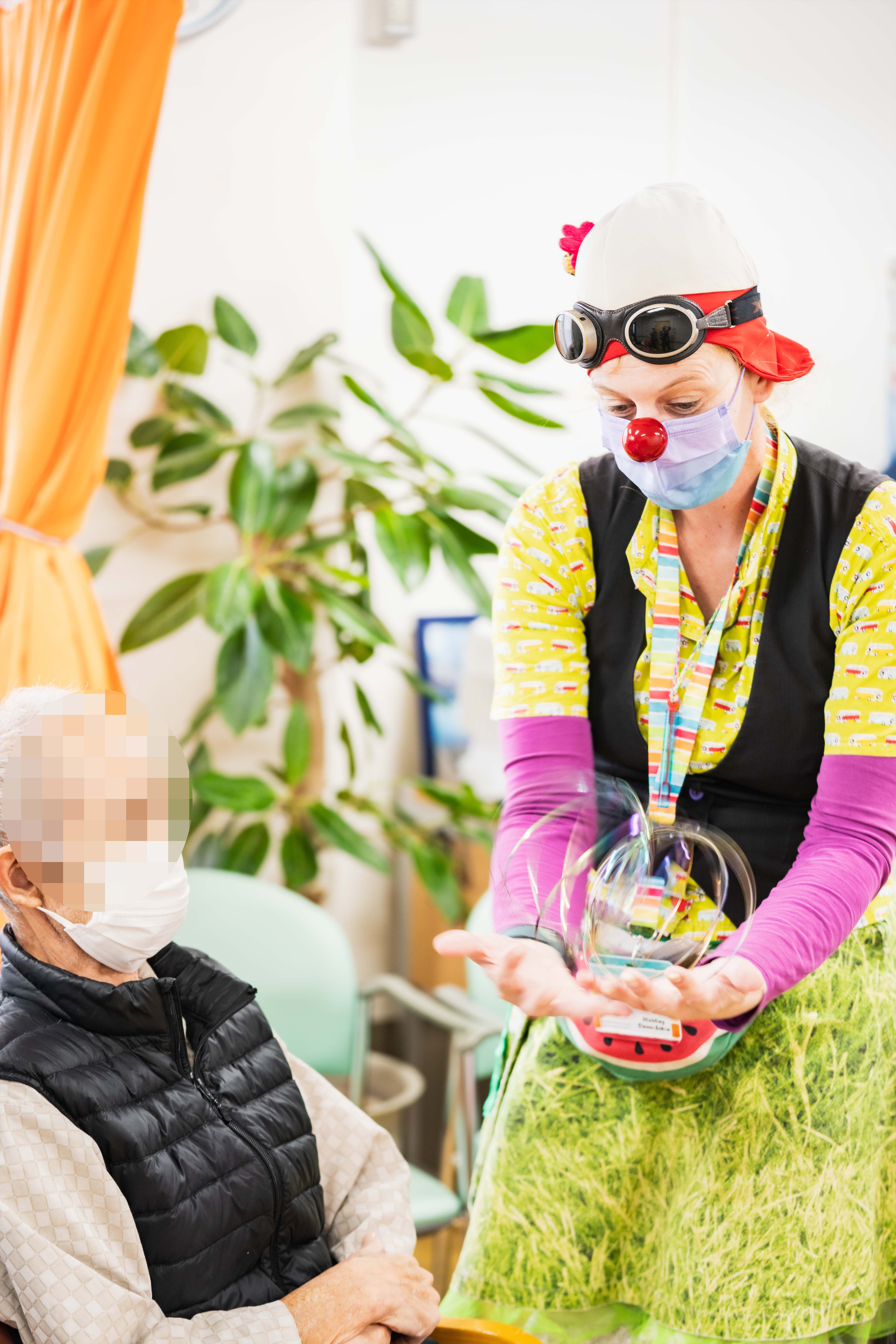 Samen met het Gesundheit! Institute van Patch Adams en 30 andere clowns van over de hele wereld mocht ik naar Japan. Het was de eerste keer dat we een humanitaire clownsreis naar dit land organiseerde. Hoewel de praktische kwaliteit van zorg in dit land over het algemeen prima is, kunnen de clowns op het emotionele vlak veel waarde verzorgen. De clown heeft binnen de Japanse cultuur een andere rol en is zeker in zorg situaties niet zo bekend. Voor sommige organisaties was het dan ook een schok toen een bus vol clowns aan kwam rijden. Maar al snel zagen ze dat het plezier van de ouderen, kinderen of mensen met een beperking. Ook de zorgen over communicatie verdwenen snel, want de clown communiceert met het lijf en met muziek.