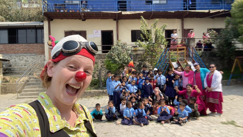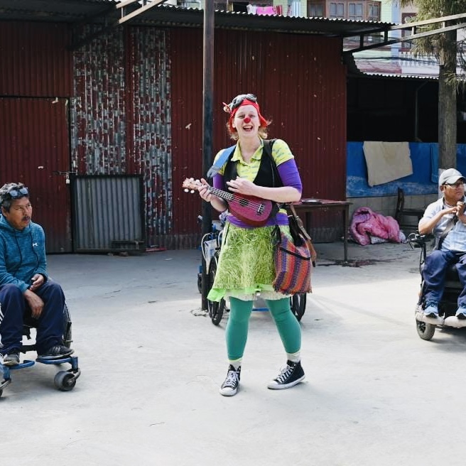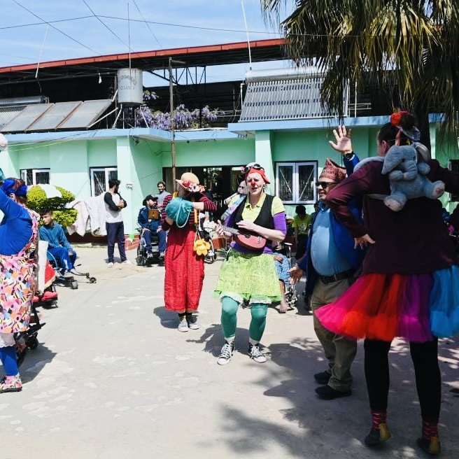 Samen met Peter en Maureen, de Bombo Clowns van Stichting Bombo organiseren ween clown tour in Kathmandu. We bezoeken schooltjes voor kinderen met een beperking, afdelingen voor oncologie en brandwonden in het ziekenhuis en opvangcentra voor kinderen met een beperking.